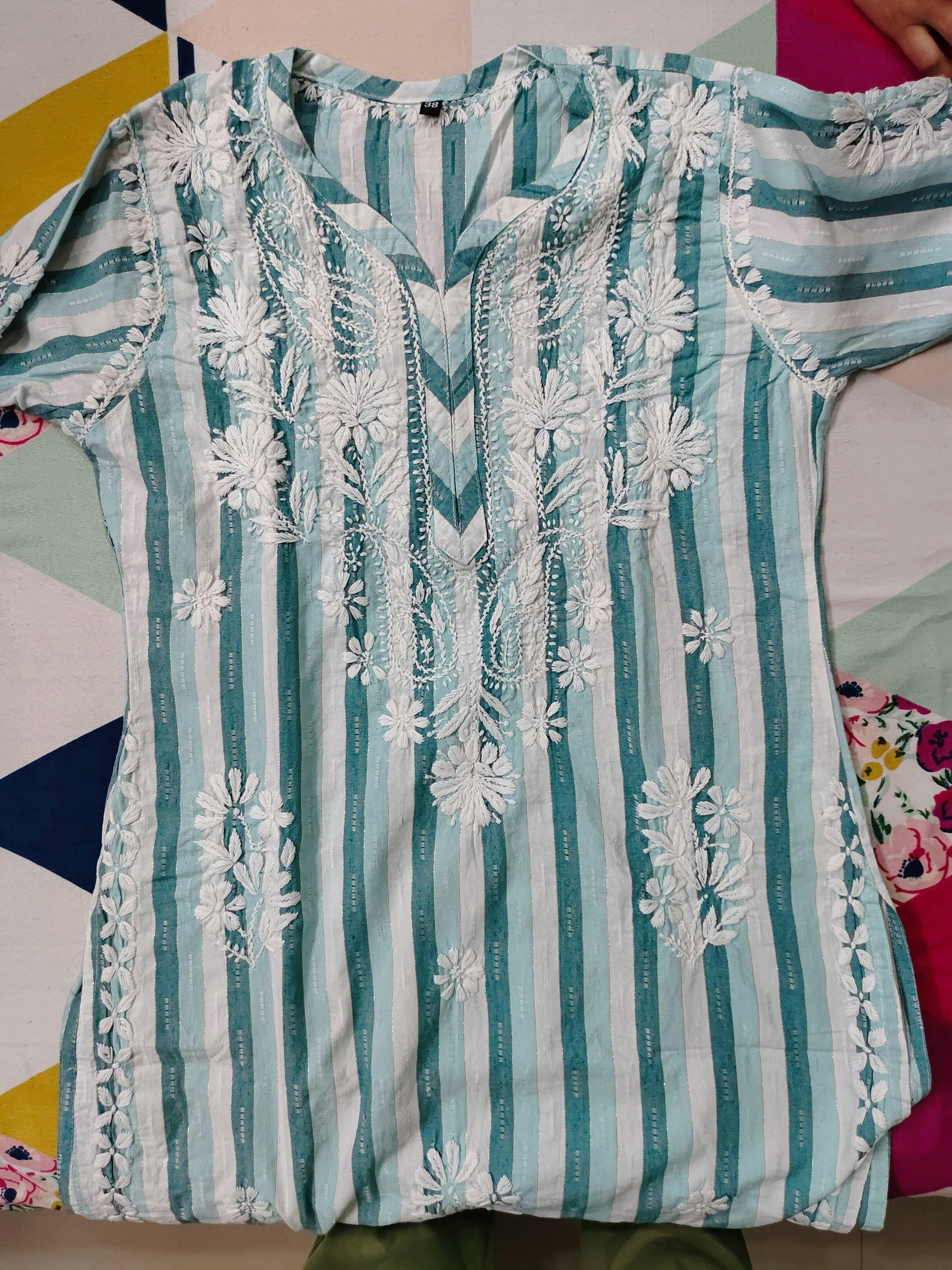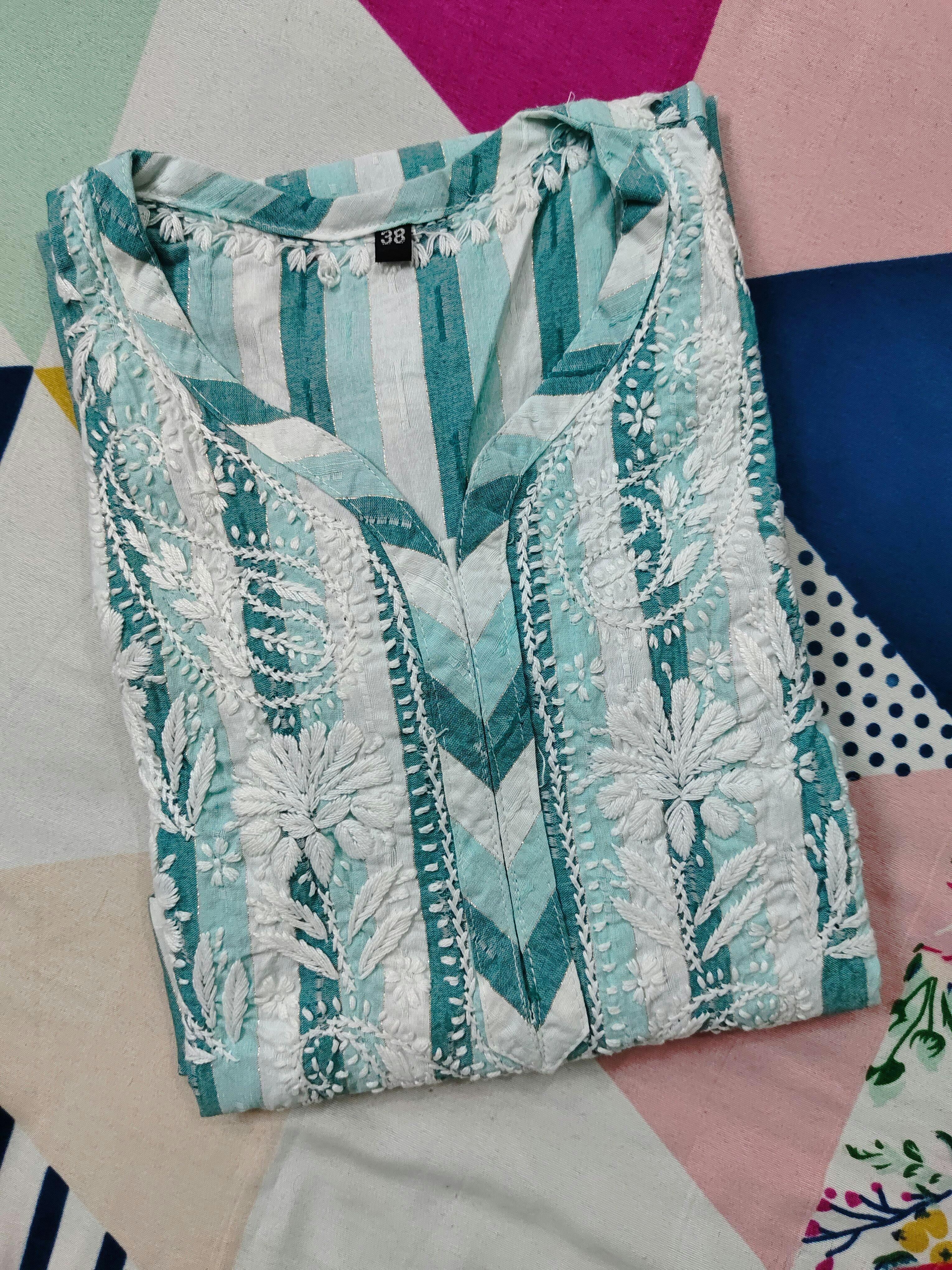 Khadi Cotton Handcrafted Chikankari Kurta Straight Fit - Teal Green